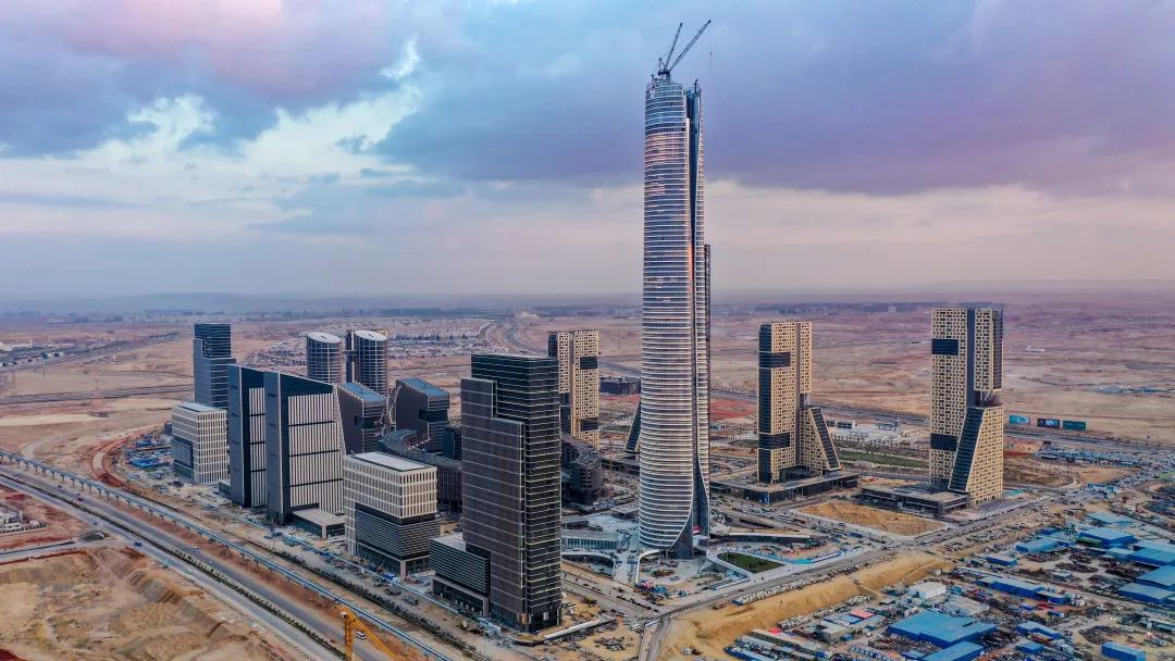 埃及標(biāo)志塔(Iconic Tower)位于開羅以東約50公里的沙漠地帶,是埃及新行政首都的核心項目之一,塔高385.8米,是名副其實的“非洲第一高樓”。作為打造中埃兩國在“一帶一路”倡議下的合作典范,塔樓于2018年開工,2023年主體結(jié)構(gòu)封頂,現(xiàn)已完成幕墻覆蓋,竣工在即。它被當(dāng)?shù)厝俗u為“新金字塔”,象征著埃及對未來的希望和對古老文明的現(xiàn)代詮釋。