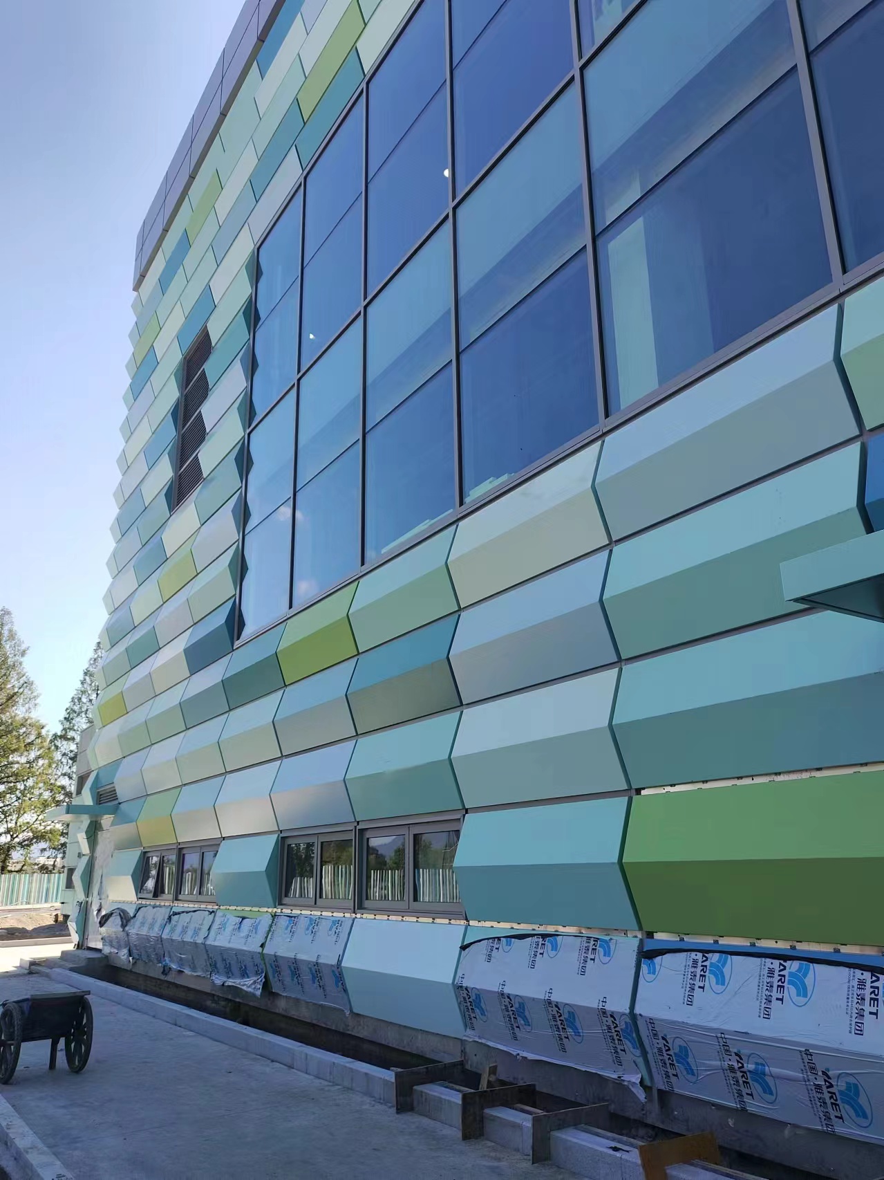 農(nóng)夫山泉項(xiàng)目使用了個(gè)性化定制的多種顏色鋁單板幕墻,項(xiàng)目幕墻對(duì)油漆調(diào)配技術(shù)要求十分嚴(yán)格,這也符合雅泰鋁單板幕墻產(chǎn)品可定制加工的特點(diǎn)。